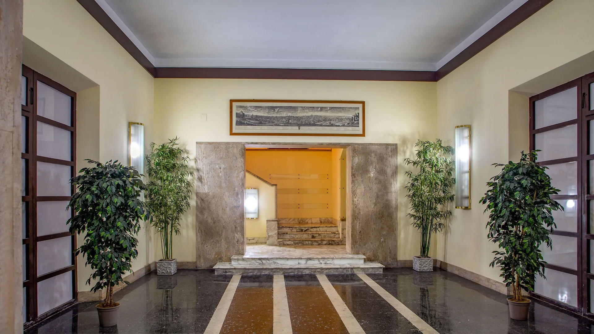 è un hotel grande con una cucina appetitosa e un personale gentile. la posizione pregevole, la vista incantevole dalle camere molto spaziose. la struttura si trova a 25 minuti di cammino dalla fontana di trevi.
